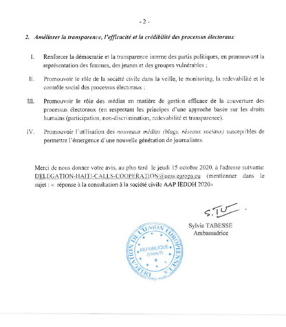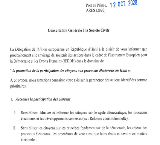Union Européenne : Consultation de la Société Civile haitienne pour la “Promotion de la Participation des Citoyens aux Processus Électoraux en Haiti
