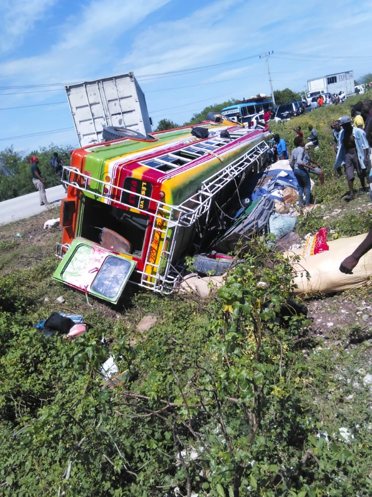 Savann Dezole____(TRiboLAND) Yon otobis Pòdpè ki pote non “Five O Nine”, ki natif natal Nòdwès chavire avan ou antre Savann Dezole ap sòti Pòtoprens jodi 23 oktòb 2020 an. Enfòmasyon yo fè konen bis la te kòmanse ap trese lèl nan moman li tap bay ti kout tèt sou pakou li pou antre nan depatman Latibonit lan, daprè plizyè pasajè ki soti sen e sof nan aksidan an ki lakoz plisyè lòt moun krabinen e blese gravman grav.