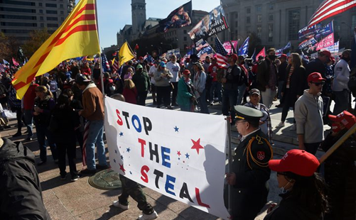 Une semaine après l’annonce des résultats de l’élection présidentielle, donnant la victoire au démocrate Joe Biden, des milliers de partisans de Donald Trump se sont rassemblés pour dénoncer des fraudes électorales, malgré l’absence de preuves accréditant cette thèse.