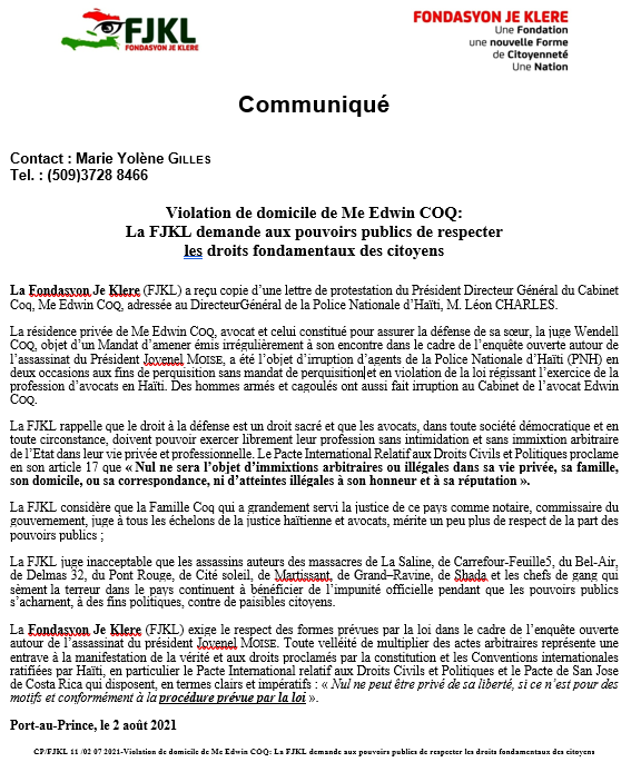 FJKL : Communiqué