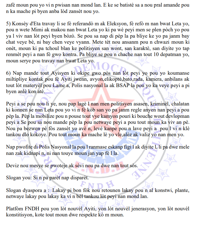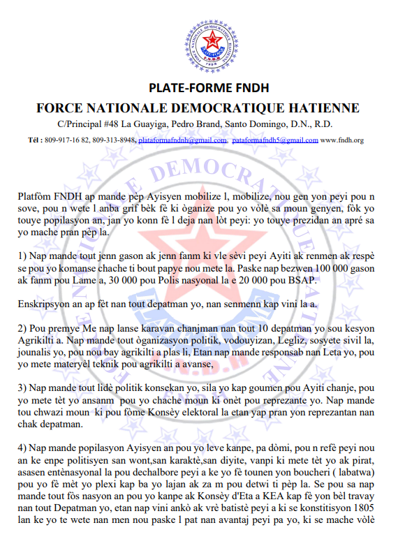 FNDH : NÒT POU LAPWÈS