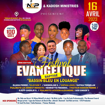 Tout moun nan sant vil la, tout seksyon kominal yo ak tout lòt lokalite ki vwazen komin Basen Ble yo, yo tout envite pou vin fasilite reyisit premyè Edisyon Festival Evanjelik la.