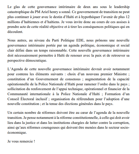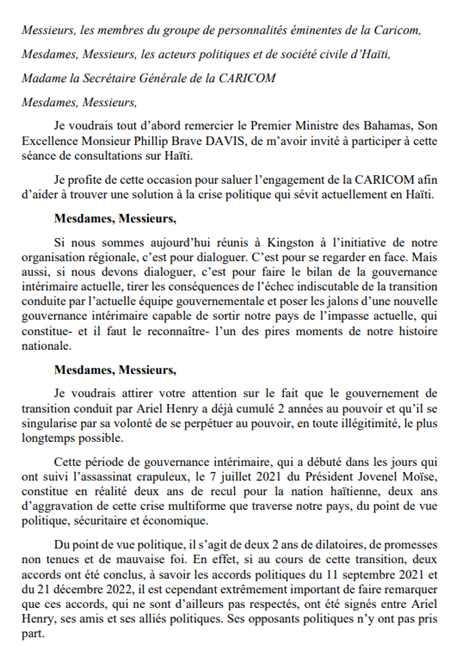 Intervention de Claude Joseph – CARICOM