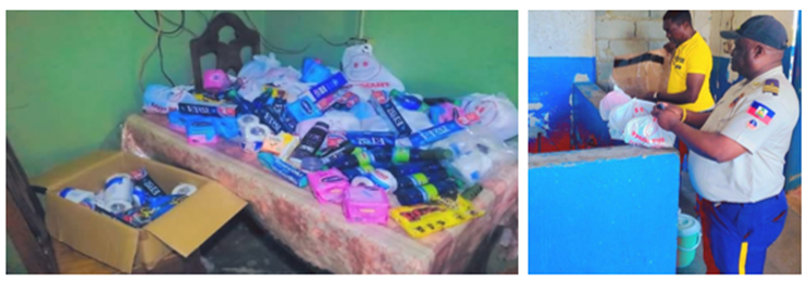 Nan moman gwo sòlòkòtò sila, prizonye fanm yo nan prizon sivil Pòdpè a, ta pral resevwa plizyè kit ijyenik ak bokit ijyenik kote anndan yo te genyen, kòlgat, savon, papye ijyenik, kotèks, bwòs ak plizyè anvlòp ki te genyen ti tchotcho poun site sa yo sèlman.