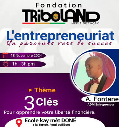 Fonkiyès, Zile Latòti_____(TRiboLAND) Nan sousi pou oryante e dote jèn lakay yo, yon zouti pou pran inisyativ ki kapab pote solisyon ak idantifye opòtinite sou mache a fas ak yon seri pwoblèm ekonomik, Fondasyon TRiboLAND sou zile Latòti, anba kòdinasyon kòdonatè Ducasse Christopher, yon gwo kòkenchenn fòmasyon gratis pral layite sou “Antreprenarya”, anba lobedyans yon ekspè nan domèn nan ki se Pastè A. Fontane.